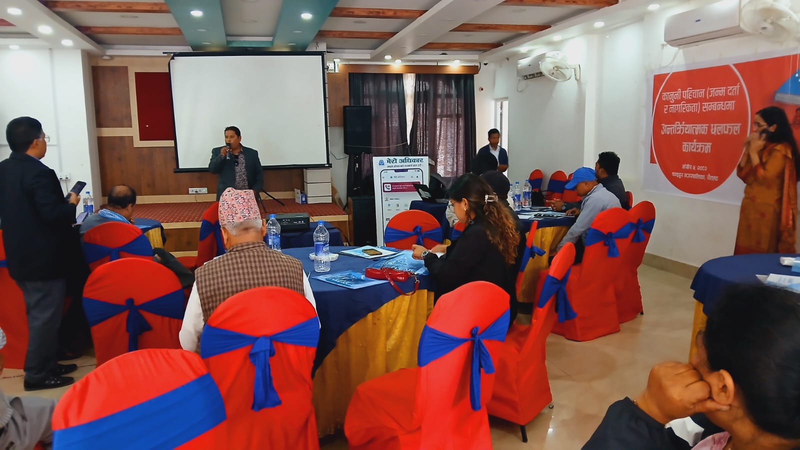 अन्र्तरक्रिया कार्यक्रममा महिला,कानुन र बिकाश मन्चको तर्फ अधिबक्ता सुष्मा गौतमले कानुनी पहिचान तथा ब्यक्तीगत घटना दर्ता सम्बन्धी प्रशिक्षण दिनुभएको थियो भने अधिबक्ता नबिन श्रेष्ठले सहजीकरण गर्नुभएको थियो । अन्र्तरक्रिया कार्यक्रममा अधिबक्ता गौतमले जन्मदर्ताको अधिकार ,नागरिकता प्राप्तीको अधिकारको बारेमा धारणा राख्नुभएको थियो ।