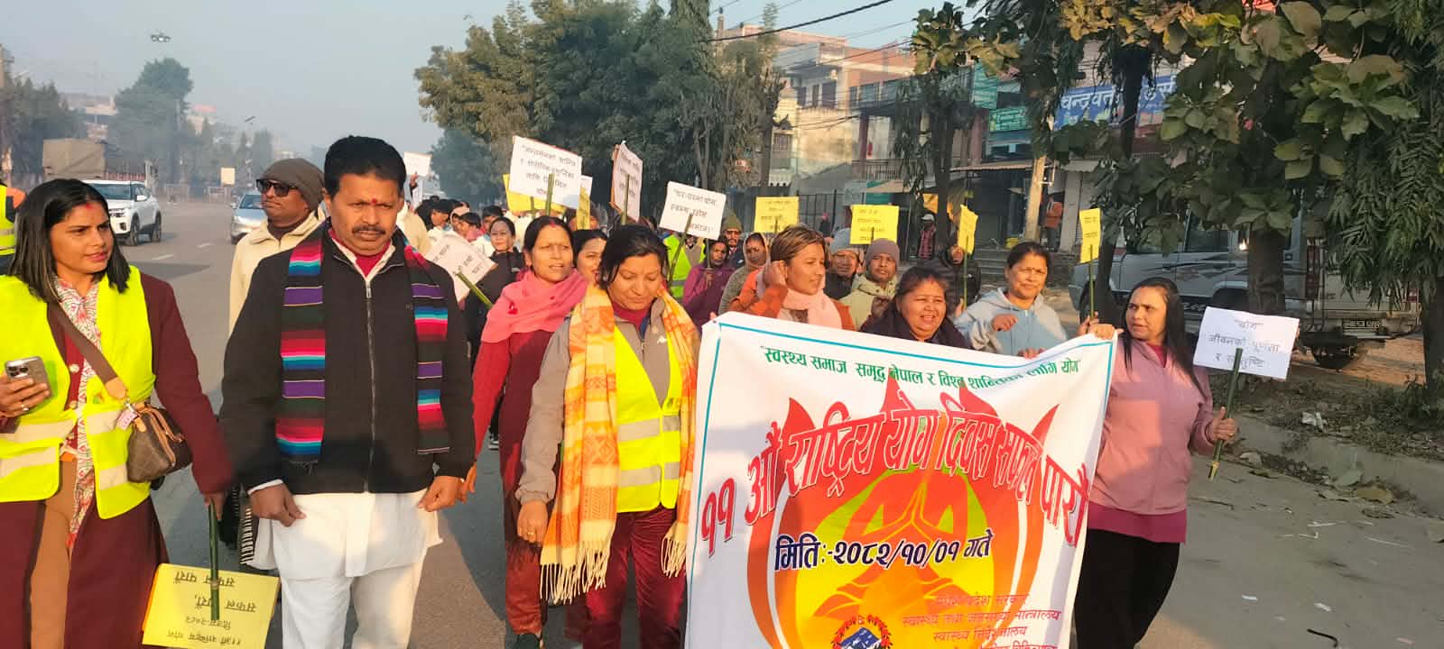 सरकारले प्रत्येक वर्ष माघ १ गतेलाई राष्ट्रिय योग दिवसका रुपमा मनाउने निर्णय गरे अनुसार यस वर्ष पनि स्थानीय स्तरमा विभिन्न चेतनामूलक कार्यक्रमहरू सञ्चालन गरेर योग दिवस मनाइएको प्रादेशिक आर्युवेद तथा बैकल्पिक चिकित्सालय रौतहट चन्द्रनिगाहपुरका प्रमुख डा.शिव शंकर रायले जानकारी दिनुभएको छ । योग दिवसमा मुख्य कार्यक्रमका रूपमा प्रभातफेरी,अन्तरक्रिया तथा प्रवचन कार्यक्रम संचालन गरेको डा. रायले जानकारी दिनुभयो ।
