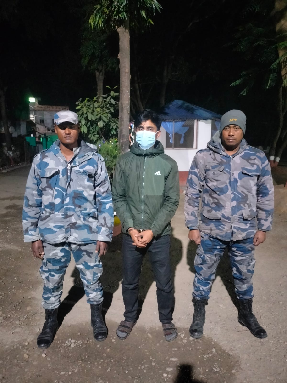 रौतहटको चन्द्रपुर नगरपालिका वार्ड नं. ४ ठाडाटोल बस्ने अन्दाजी २७ बर्षिय सागर खाती विश्वकर्मालाइ पक्राउ गरिएको शसस्त्र प्रहरी सुरक्षा वेस सन्तपुरका शसस्त्र प्रहरी नायब उपरिक्षक विश्व जिसीले जानकारी दिएका छन ।