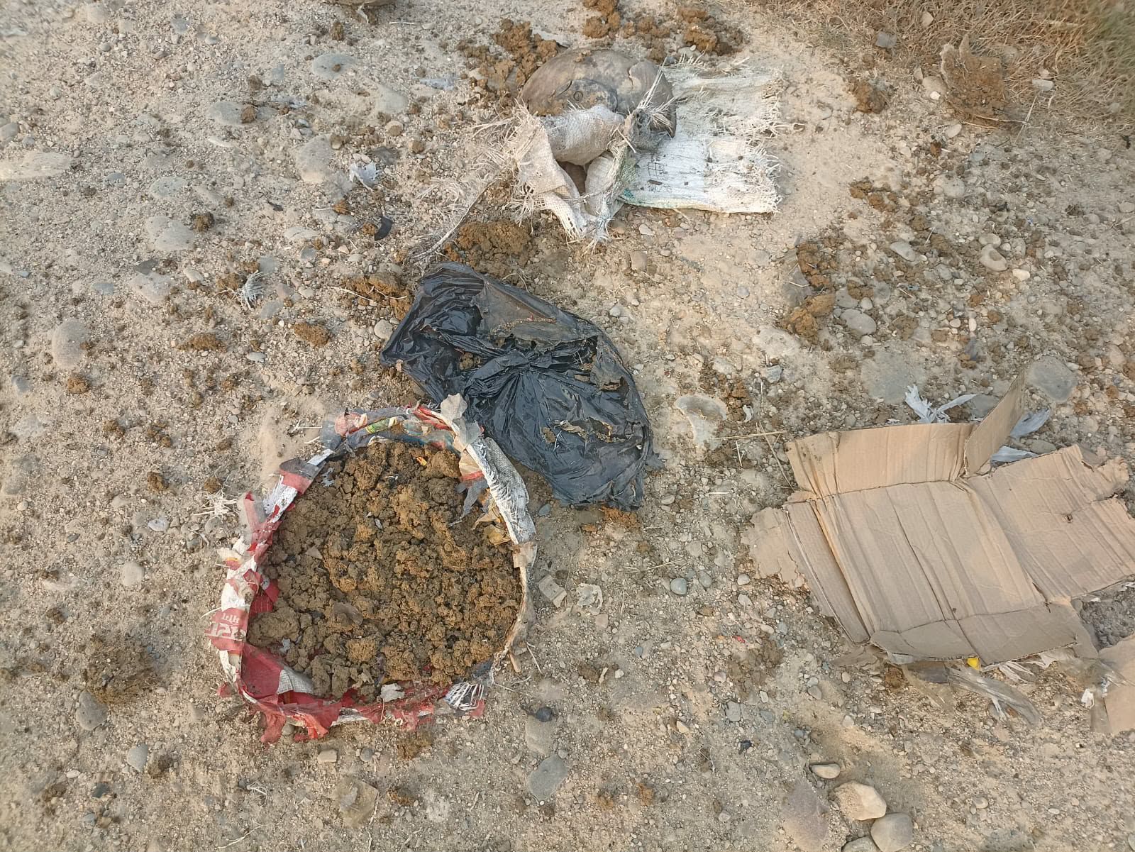 माटोको बोरामा बिच बाटोमा राखिएको उक्त बस्तु सोमबार राती देखि नै राखिएको थियो ।